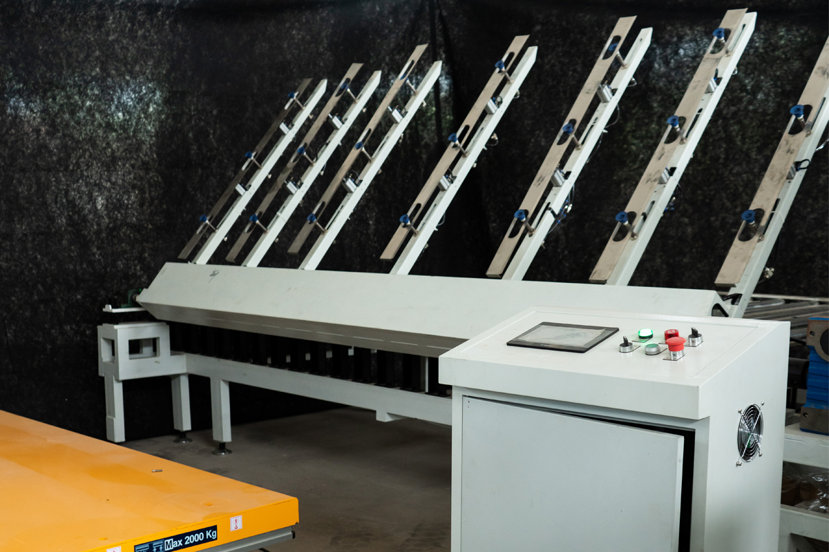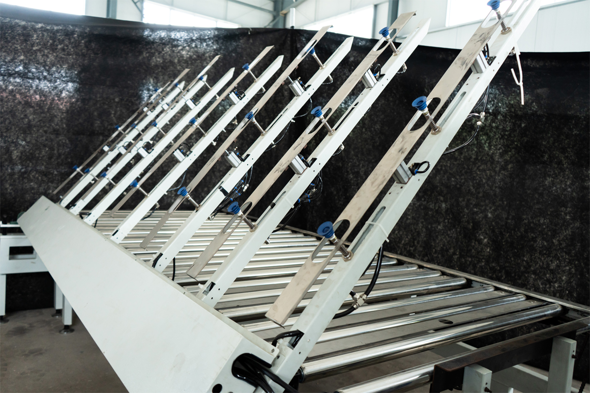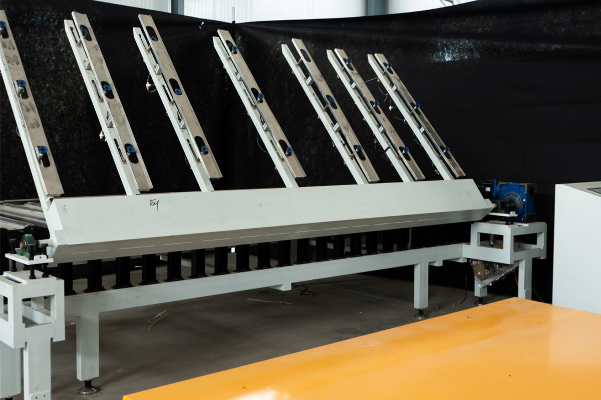 XLD-1335 型 全自动翻板机是本公司开发用于生产复合板材,代替人工复合的自动化设备,整个工艺流程将大幅度节省人工,降低工人的劳动强度,大大节约了用工成本,提高了工作效率,稳定了产品质量。