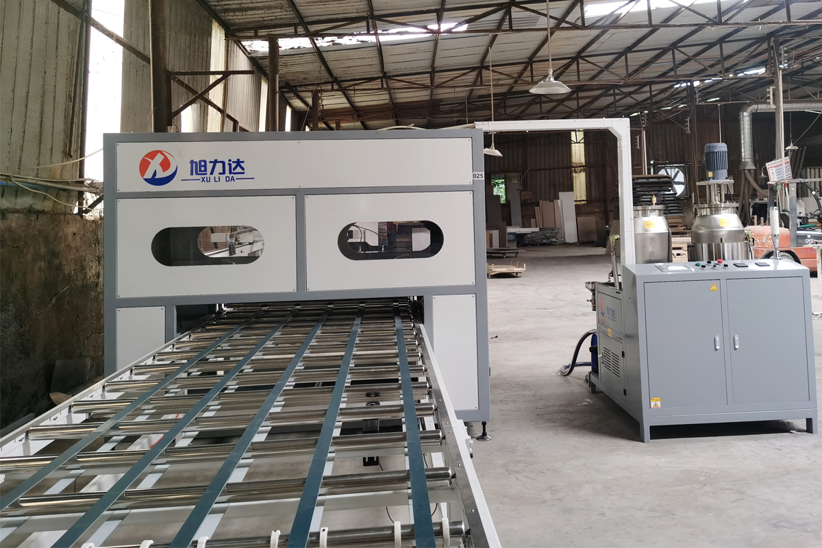 | 生产效率 | 设备生产速度 8m/min, 按板材宽度 1.2m 计算: 8m/1.2m/60min/8h=4600平方 | 人工刮胶一天 8 小时刷1000 平左右 | ||||||||||