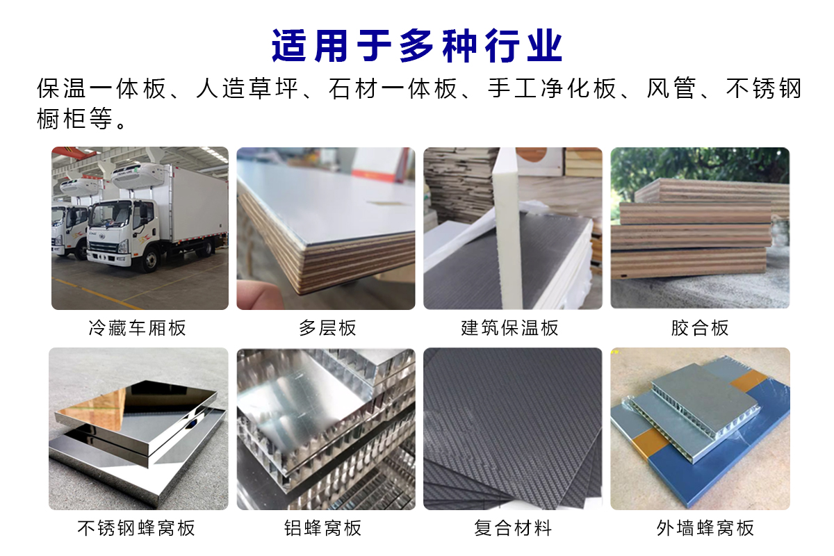 | 涂胶精准性 | 淋胶过程中板材四个边缘距离可控,避免板材胶水外溢影响美观 | 满面涂胶,板材压合后,容易造成边缘污染 | ||||||||||
