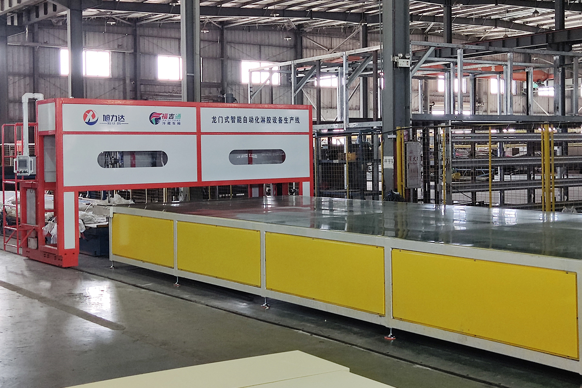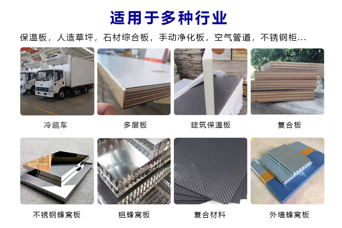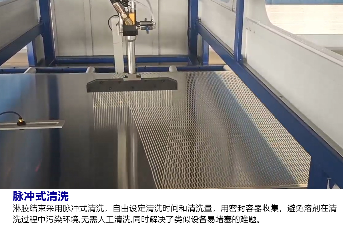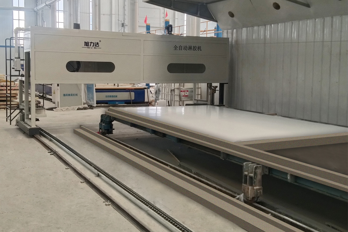 | 涂胶精准性 | 淋胶过程中板材四个边缘距离可控,避免板材胶水外溢影响美观 | 满面涂胶,板材压合后,容易造成边缘污染 | |||||||||||